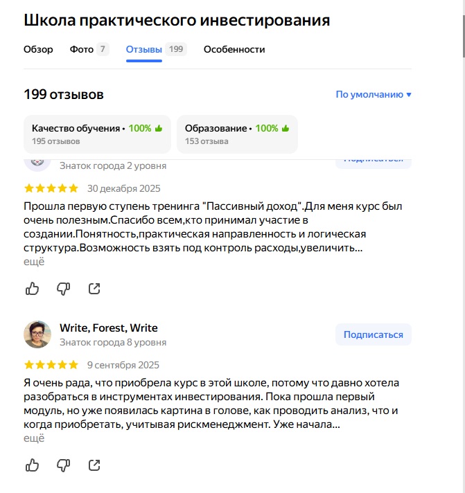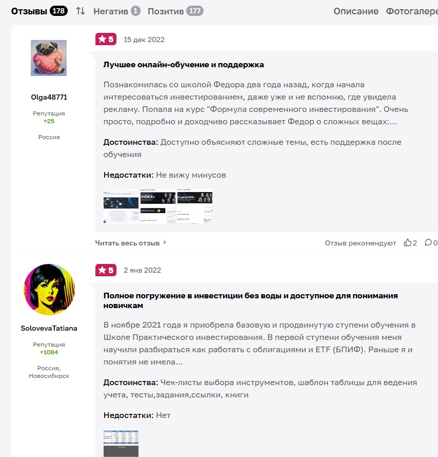 Отзывы реальных пользователей о школе практического инвестирования investorpractic