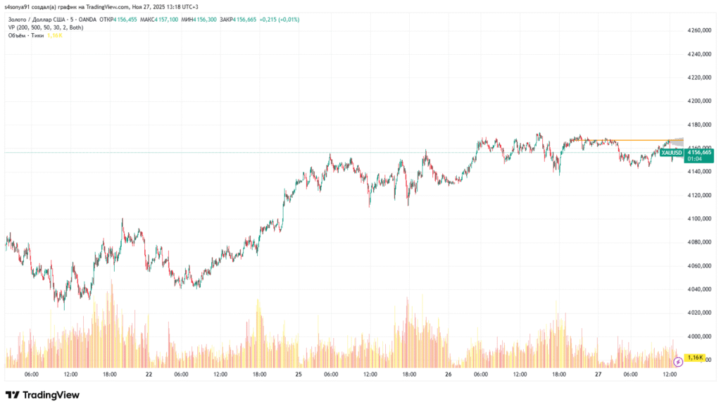 Спотовая цена золота (XAU/USD) сейчас — примерно 4150$ за унцию.