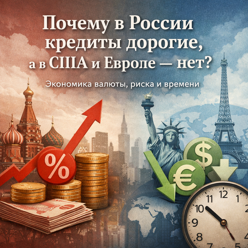 В спорах о состоянии экономики часто звучит тезис: на Западе всё плохо, энергия дорогая, промышленность деградирует. В ответ закономерно возникает простой вопрос: если всё настолько плохо, почему в США, Германии, Франции нет ипотеки под 25% и потребительских кредитов под 30. Этот вопрос обычно повисает в воздухе, потому что ответ на него лежит не в политике и не в ценах на газ, а в устройстве денежной системы.