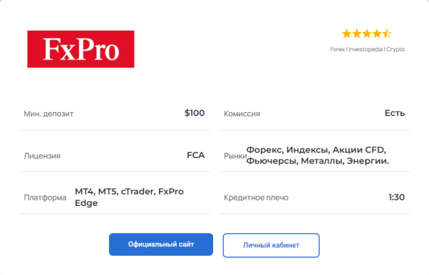 Отдельный момент — маржинальные требования. У некоторых брокеров они слишком жёсткие для агрессивных стратегий. Здесь наиболее сбалансированный вариант — FxPro: у него условия под разные стили, и маржинальные параметры не давят на трейдера.
