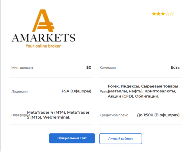 AMarkets стабильно держит высокие позиции, потому что предлагает ровно то, что нужно подавляющему большинству трейдеров: быстрое исполнение, счёт с прозрачной комиссией, адекватные спреды и вывод без сюрпризов. Компания работает больше 15 лет, что важный аргумент для рынка, где многие «лежат» уже через три года.