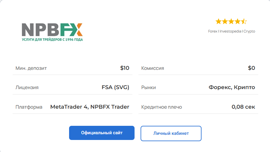 NPBFX — быстрый вывод, низкий спред, нулевые комиссии