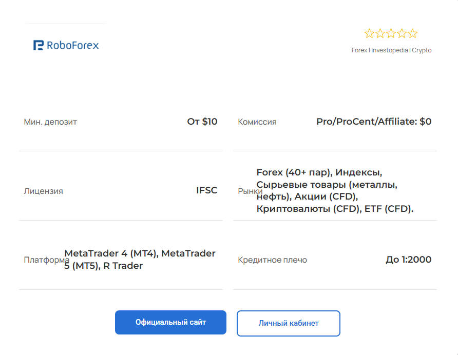 Если же трейдер ищет брокера под CFD или криптовалюты, больше свободы даёт RoboForex. У него широкий набор нестандартных инструментов и своя платформа R-Trader, где удобно комбинировать активы и тестировать стратегии.